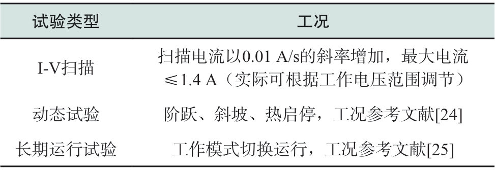 考虑到此类新型电堆的机械结构与常见电堆有所不同,工作特性研究尚处于初步摸索阶段,有待深入挖掘其调频潜力。本文将首先通过电堆I-V扫描试验,测试电堆的稳态性能,从调频控制的角度,分析电堆工作特性的影响因素;进一步基于调频电源需求,从动态响应以及长时间运行2个角度进行试验分析,以期为新型电堆在调频场景下的控制应用提供相关参考。