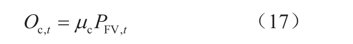 合成甲醇的碳源来自煤电机组发电,式 (17)模拟煤电机组输出功率与CO2产生量的关系。式中:Oc,t为煤电机组t时刻的CO2排放量;μc为燃煤机组的CO2排放强度。