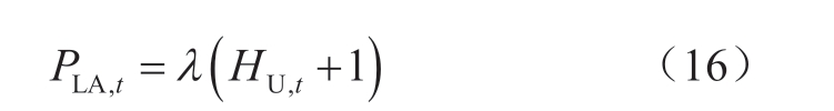 式 (15)、(16) 表示氢能利用环节中的氨/甲醇产量、耗氢量与生产功耗的关系。式中:Mt为氨/甲醇的单位时间产量;ϕ 为氨/甲醇的反应效率;λ为合成氨/甲醇功耗和耗氢量的比值。