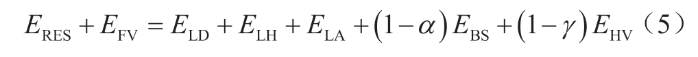 式(5)模拟了全系统电量平衡,新能源基地所有机组的发电量等于用电量,由于储能的充放电过程以及电-氢-电的转换过程均存在一定能量损失,因此在全系统电量平衡中需要考虑储能和电-制氢-氢发电过程的电量损失。式中:E表示电量;α、γ 分别表示储能充放电效率、电-氢-电综合转换效率。
