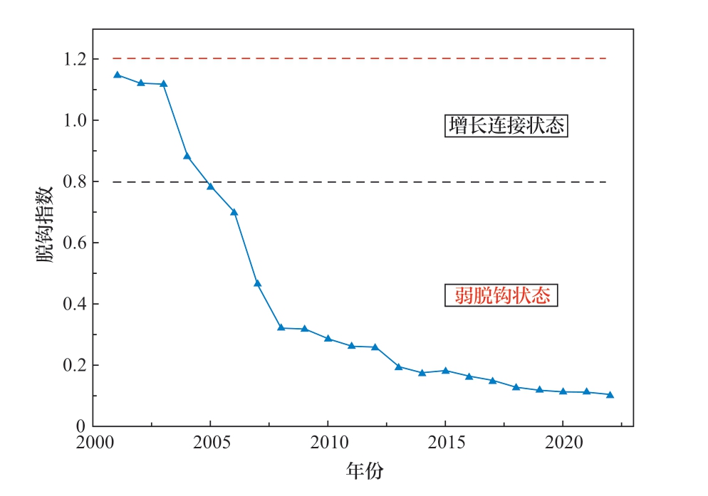 图3 贵州省2000—2022年经济发展和碳排放脱钩情况