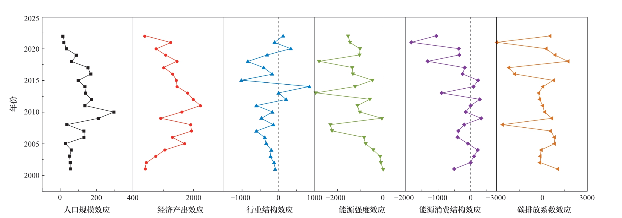 Fig. 4 Decomposition of influencing factors of carbon emission in Guizhou Province